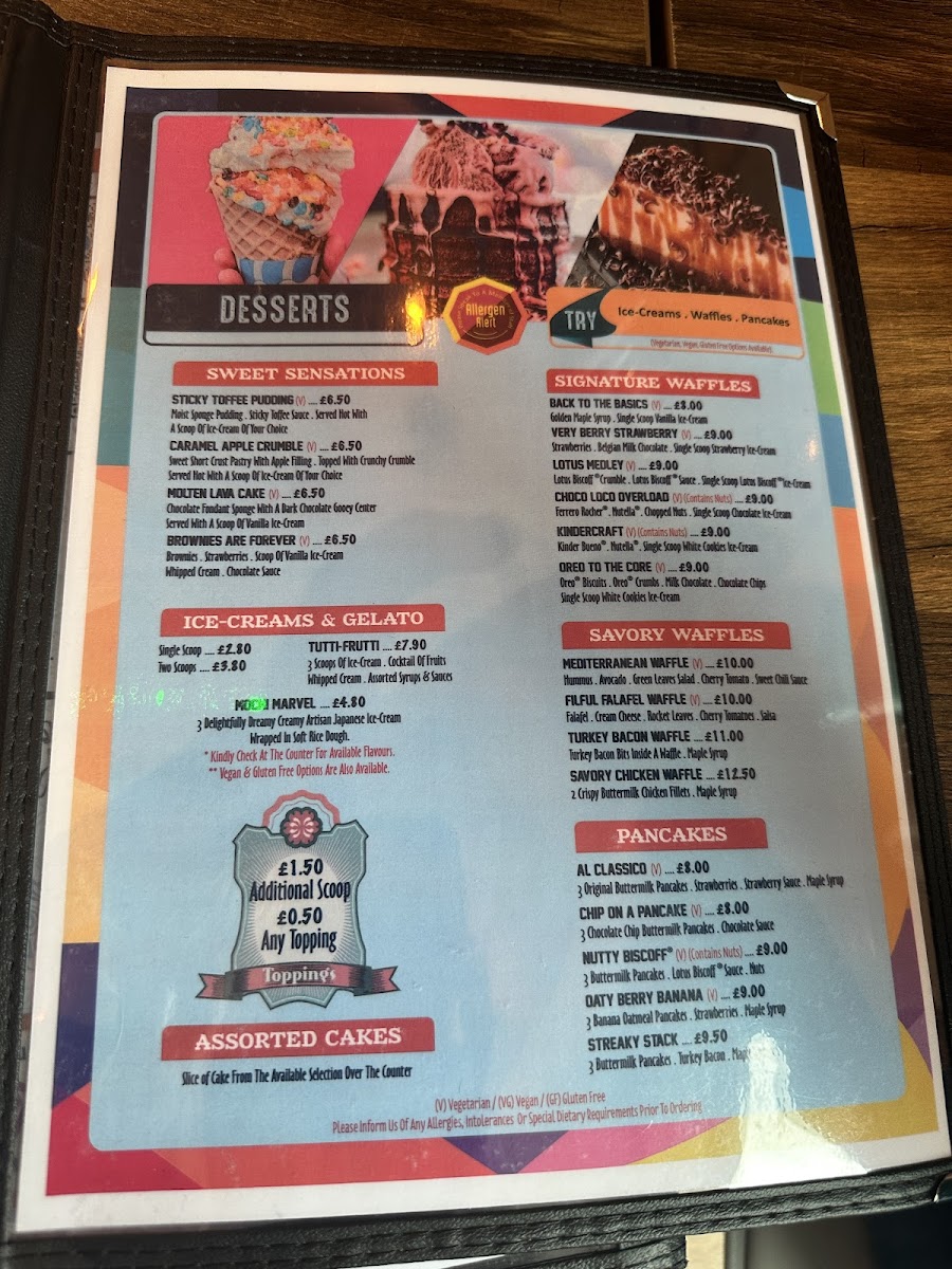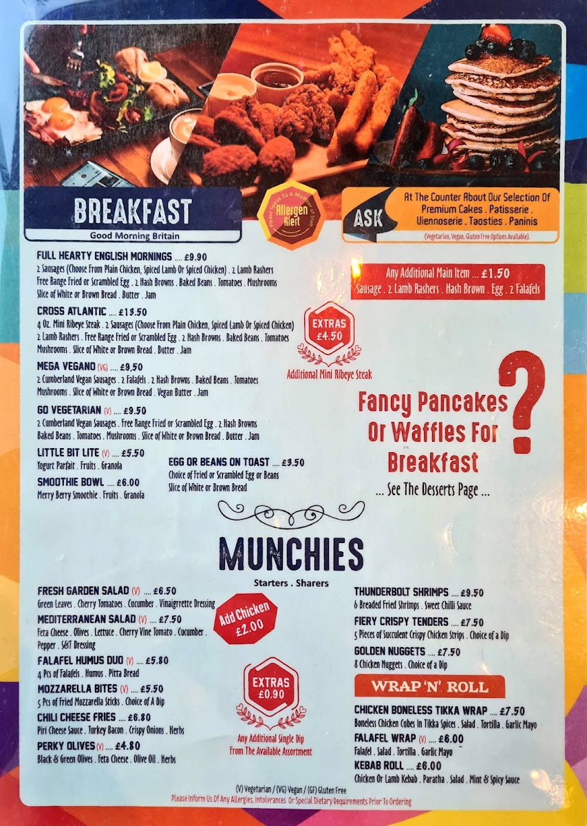 Start your day with classic breakfast choices like fluffy pancakes or an English Breakfast, paired with a smooth latte or a richly brewed coffee. For something a little different, explore their wraps and rolls, such as the flavorful falafel or the chicken boneless tikka wrap, ideal for a quick yet fulfilling lunch. Evenings invite heartier plates, including the cajun fries, spicy beef burger, or grilled lamb chops, each echoing the warmth of the café’s welcoming atmosphere.